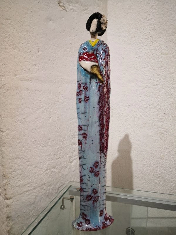 Original sculpture, in glazed ceramic, using the Japanese RAKU technique. Entitled ‘Geisha - Japan’.