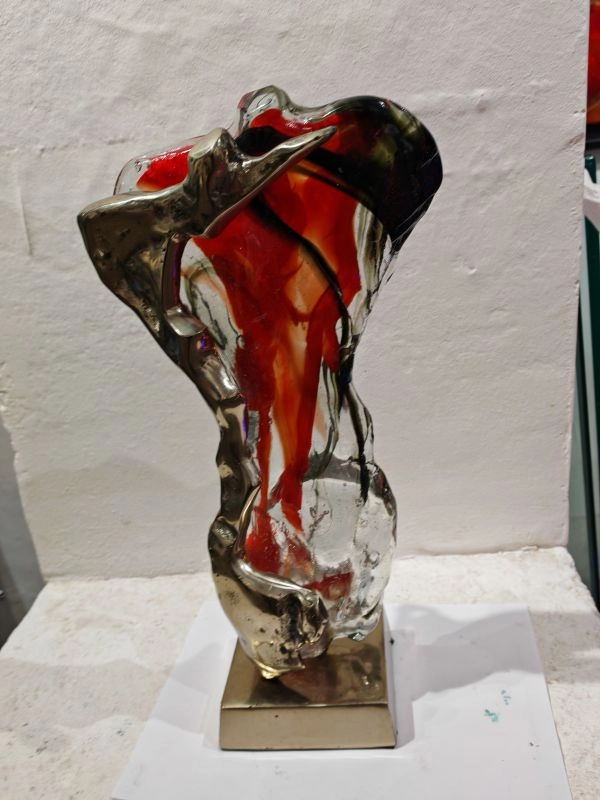 Silver-plated bronze and pâte de verre sculpture - Entitled “Bust of a Man.” H 43 cm. Signed on the base.