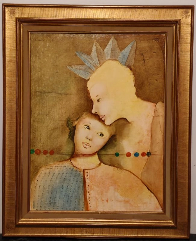 This oil on canvas is entitled ‘The Educator’. It is signed in the top left-hand corner and dated 1982, with the inscription 11-11-1982 N°4 on the back.