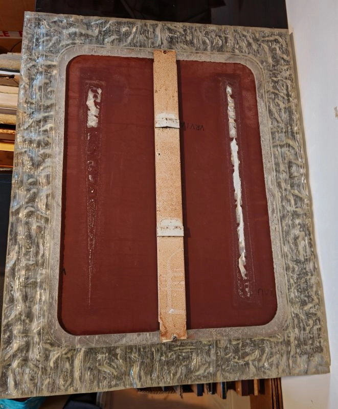 Packaging provided by the Gallery, with several layers of cardboard and bubble wrap.