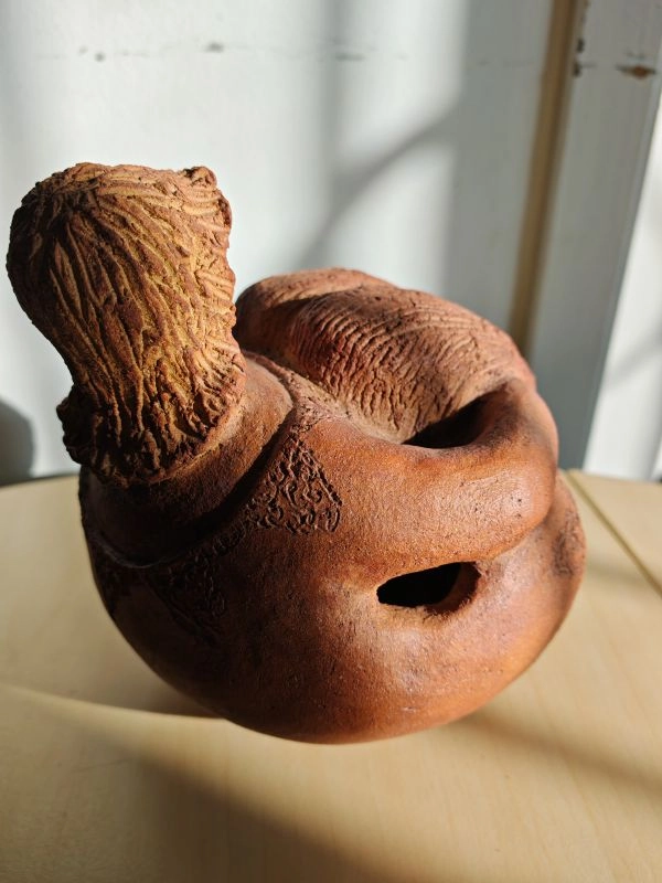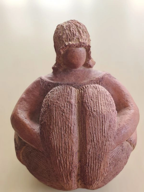 Patinated terracotta sculpture by Marie-Noëlle Ronayette-Grange. Entitled “COCOONING MARRON.”