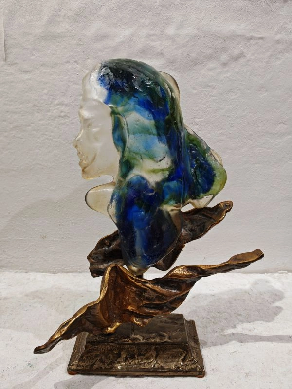 Sculpture en Bronze et Pâte de Verre - Intitulée "Visage de Femme".