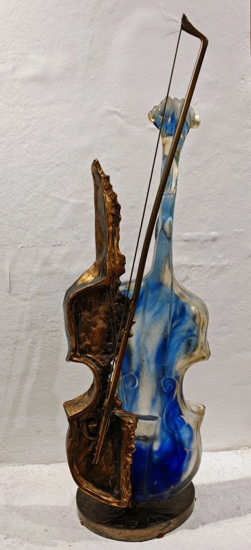 Sculpture en Bronze et Pâte de Verre - Intitulée "Violonissimo".