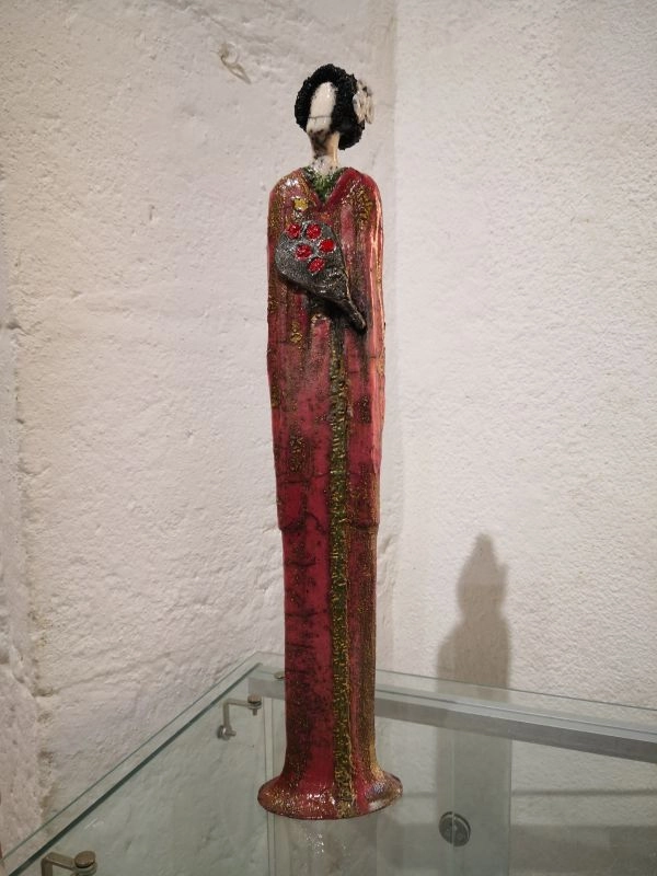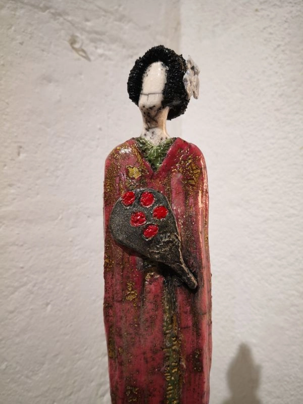 Originale sculpture, en céramique émaillée, dans la Technique Japonaise du RAKU. Intitulée "Geïsha - Japon".