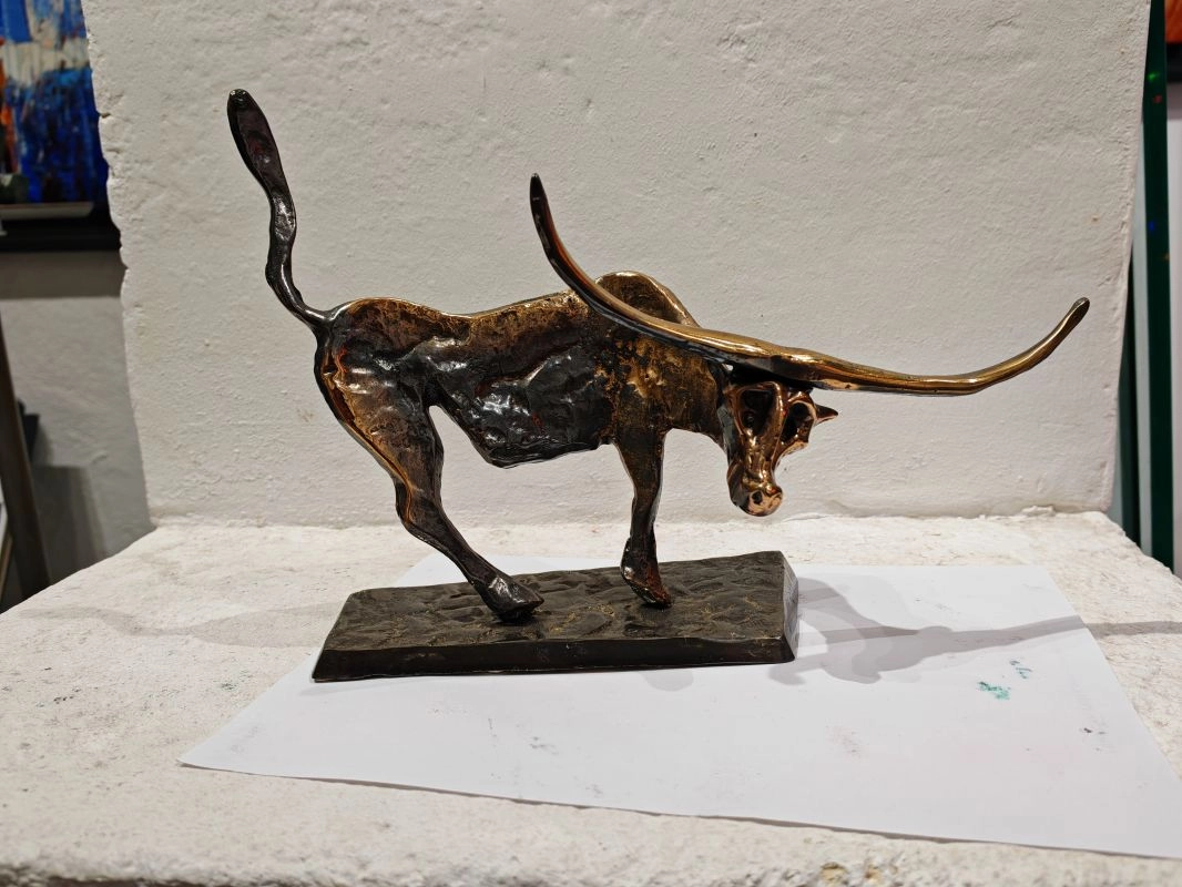 Intitulée "Balto - Le Taureau" - Signé en creux sur la terrasse.