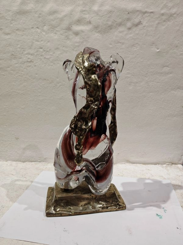 Sculpture en Bronze Argenté et Pâte de Verre - Intitulée "Chamade - Buste de Femme" - H 27 cm. Signée sur la terrasse.