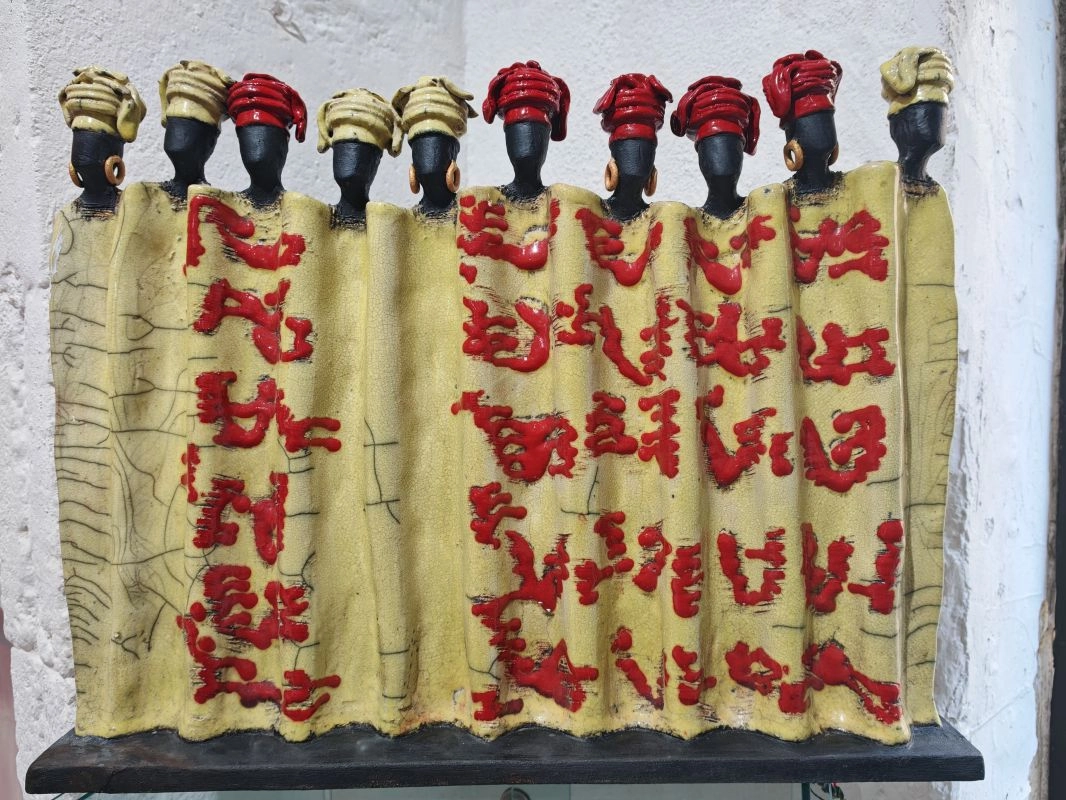 Magnifique sculpture en céramique émaillée, dans la Technique Japonaise du RAKU. Intitulée "Drapé 10 Africaines".