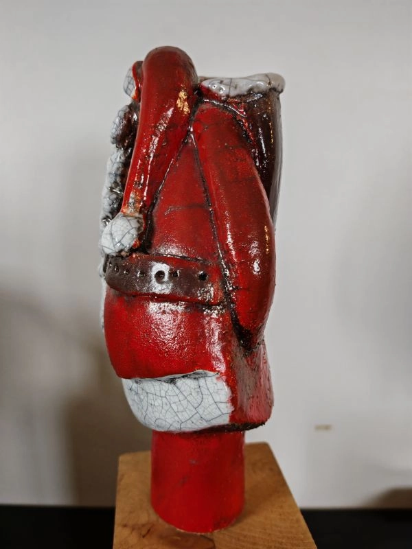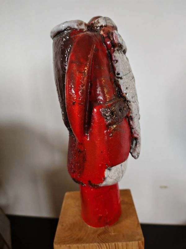 Scu!pture en Terre Cuite émaillée de l'Artiste FARA. Intitulée "PERE NOËL" .