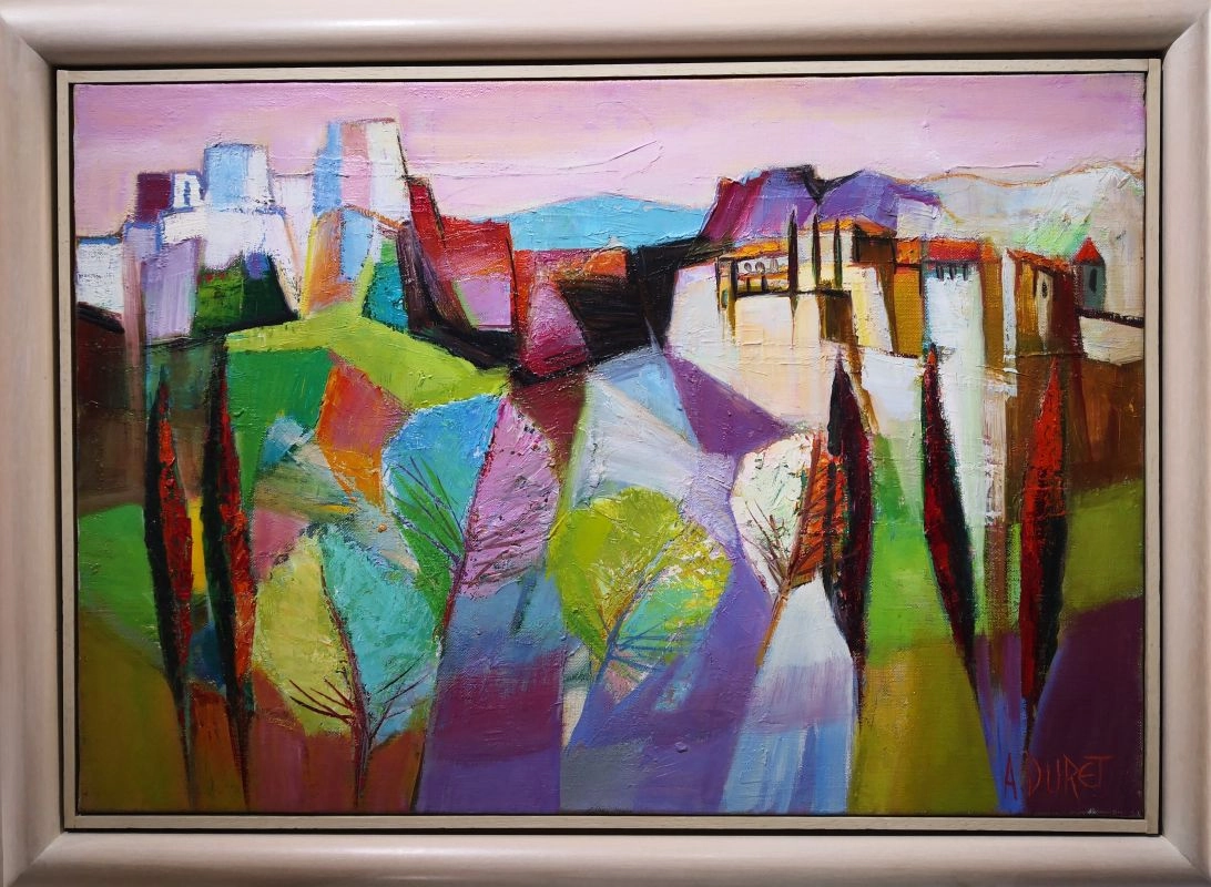 Très belle composition d'André DURET ( 1921-2019), qui donne vie aux couleurs extraordinaires du célèbre village des Baux de Provence.