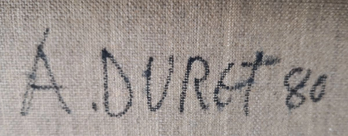 Cette Huile sur Toile de 37.5 x 54.5 cm est encadrée, signée en bas à droite, Datée 80 et signée au dos.